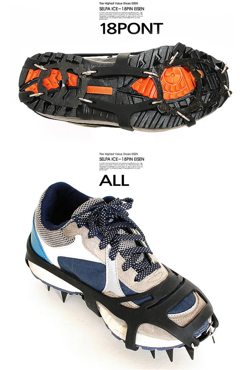 1 Pair 18 Teeth Anti-Slip Ice Snow Grips Shoe Boot Traction Cleat Spikes Crampon