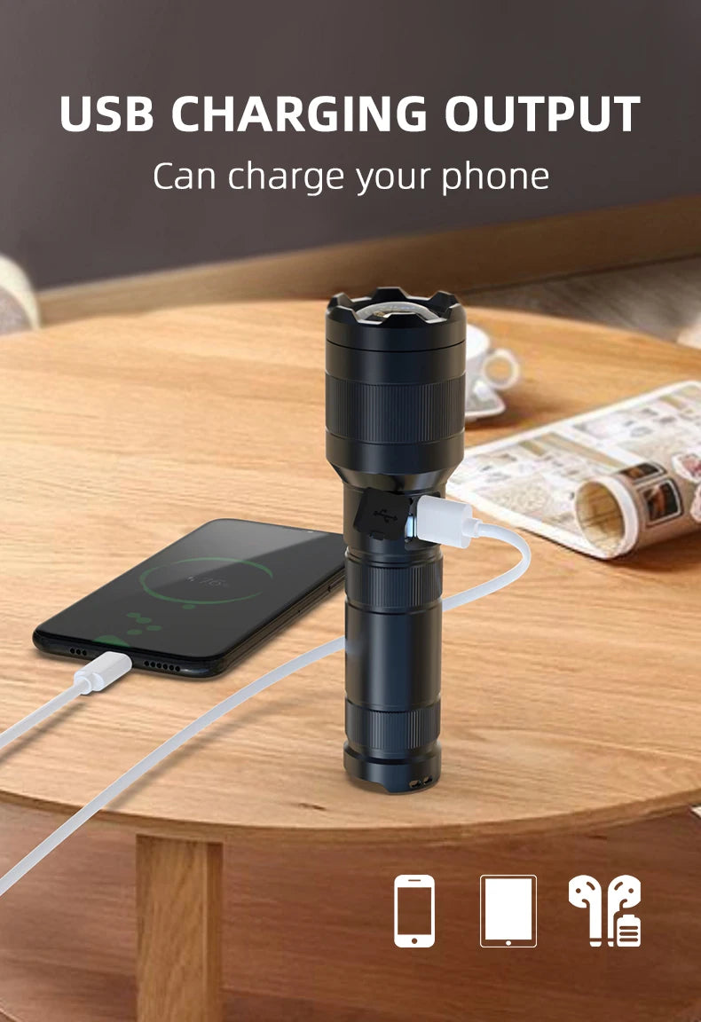 LEP White Laser Flashlight 1200-1500 Meters Rechargeable Battery