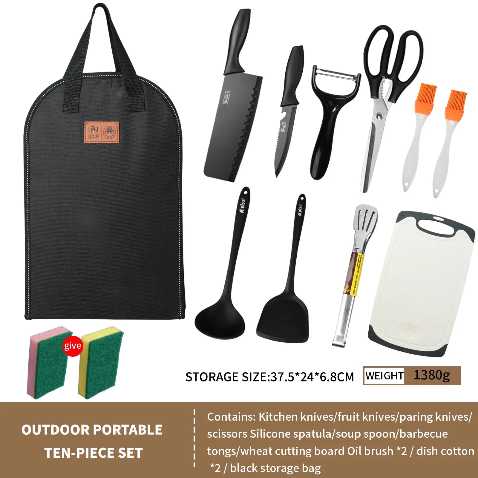 Portable outdoor utensils set of 10 pieces titanium